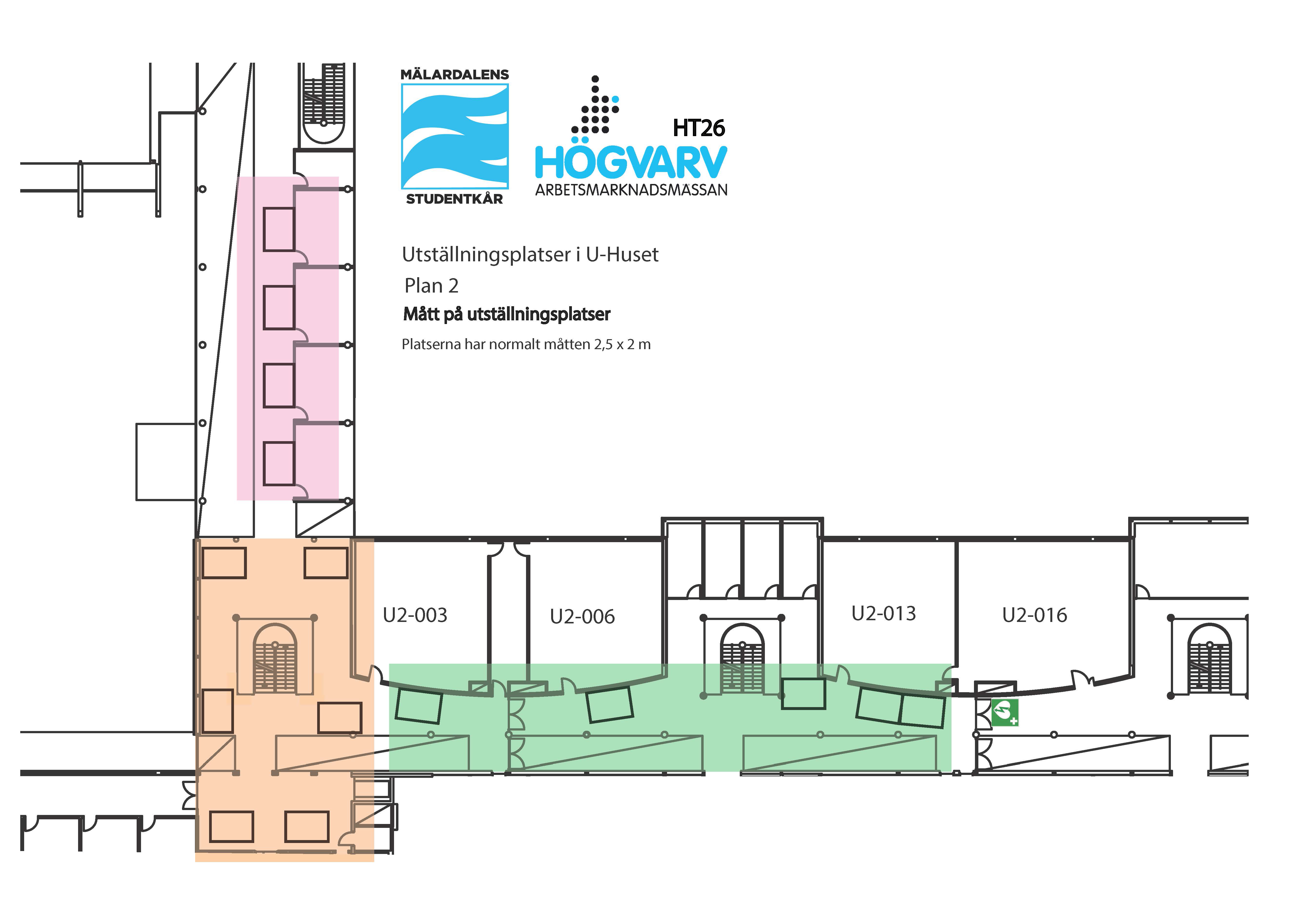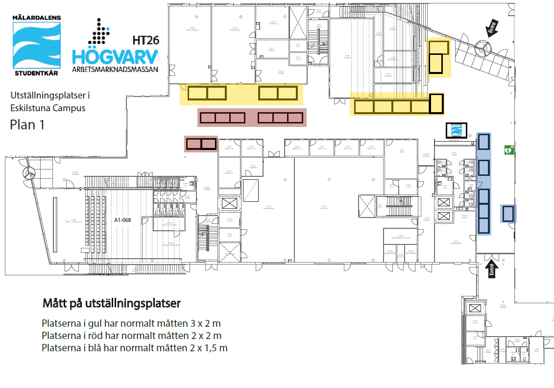 LARGE Yellow Package – Maximum available rooms: 4. Own classroom on Floor 2, furnished as desired, plus a roll-up with directions at the entrance on Floor 1. Includes 4 extra meal tickets (total of 8). Cost: 27,000 SEK. This package is for larger organizations that wish to showcase equipment and also have the opportunity for a meeting area to sit down with students. (Available rooms left: 4 rooms)