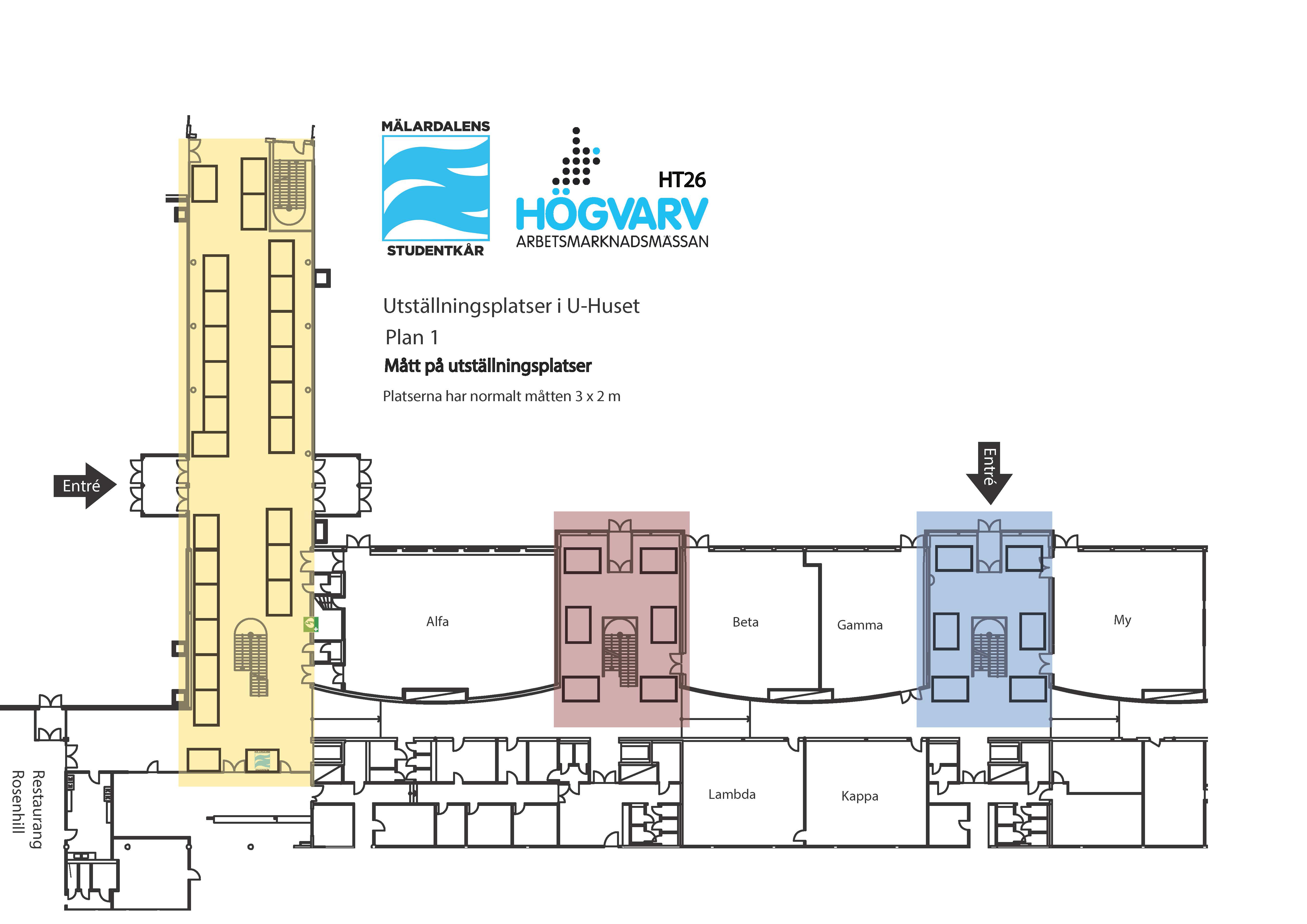 Yellow Package – Booth space closest to the university’s main entrance, dimensions 3 x 2 m. One standing table included. Meal tickets included for up to four representatives. Cost: 25,000 SEK (Available spots left: 25 spots)